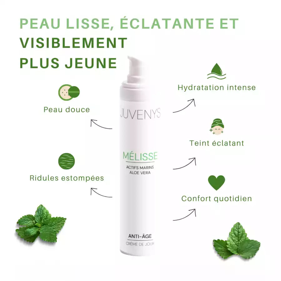 Sa texture veloutée et son arôme délicat de Mélisse laissent la peau douce, fraîche et apaisée.